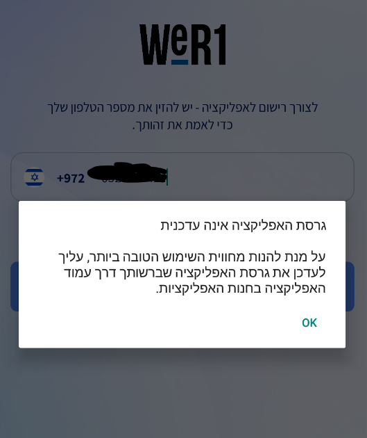 התקנתי את תעודת האבטחה כראוי והתקנתי את התוכנה של WER1 וכאשר אני מנסה להיכנס הוא כותב לי שהאפליקציה לו מעודכת