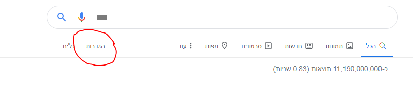 מתחת לשורת החיפוש בעמוד התוצאות של גוגל, בוחרים ב- "הגדרות"לכידה.PNG