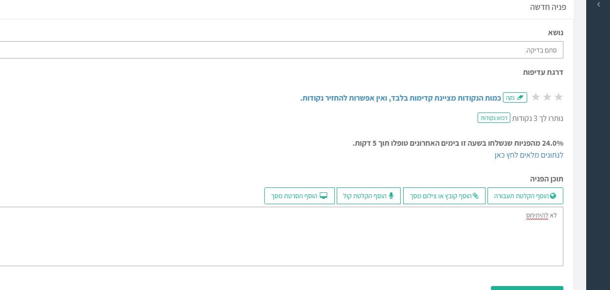 כששולחים פניה חדשה כל פניה חדשה אז הפניה מוסמנת כמו פניה עם הודעה חדשה וזה ל עיתים קרובות מבלבל מאוד כדאי מאוד לעשות כששלוחים פניה חדשה יסומן כנקרא אצל המשתמש יכול לחסוך הרבה בלבולים.